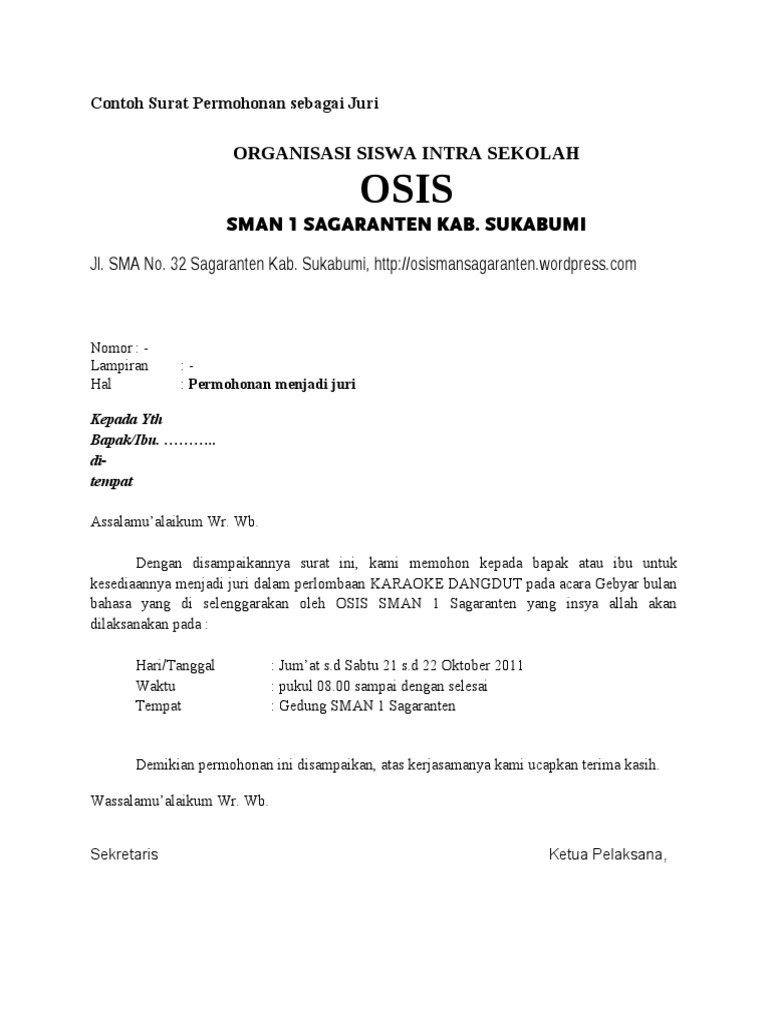 Contoh Surat Permohonan Sebagai Juri Pdf